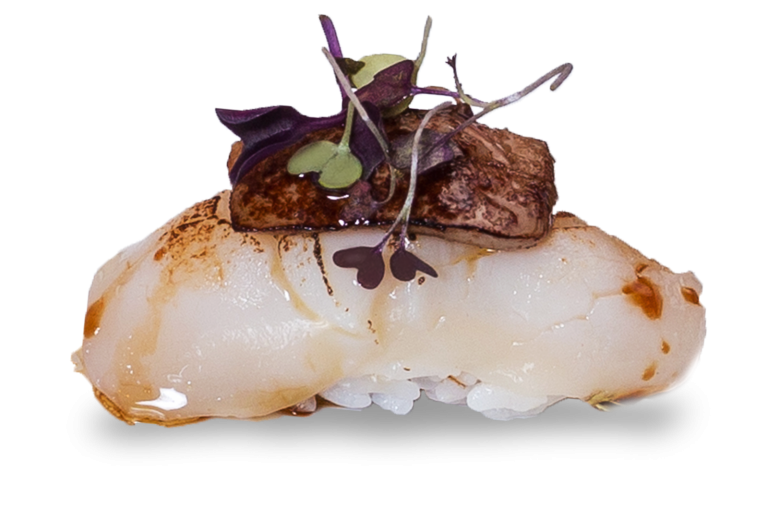 Salmon aburi stuffed with foie gras and cheese