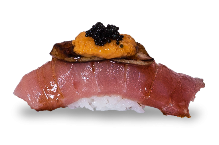 Tamago and salmon topped with Caviar